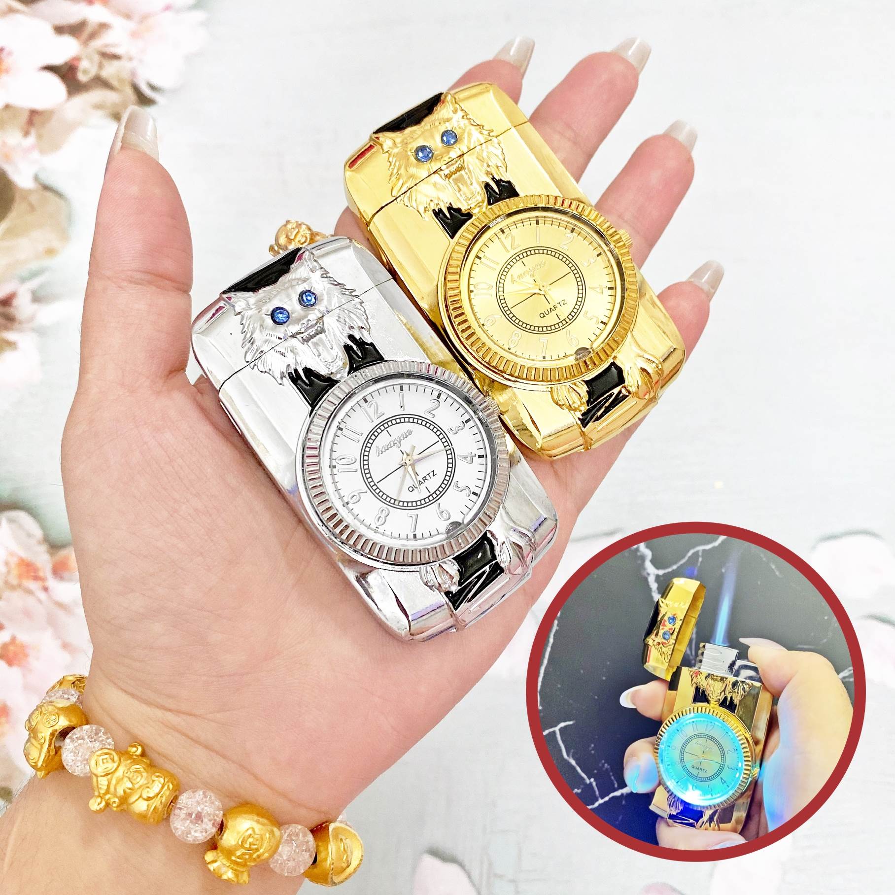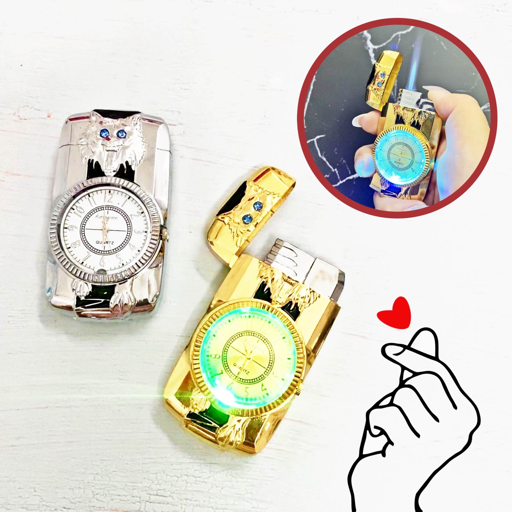BẬT LỬA KHÈ - ĐỒNG HỒ 2IN1 HÌNH CHÓ SÓI - CÓ ĐÈN LED (CÓ HỘP) - (XÀI GAS)