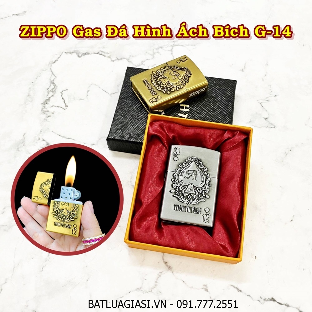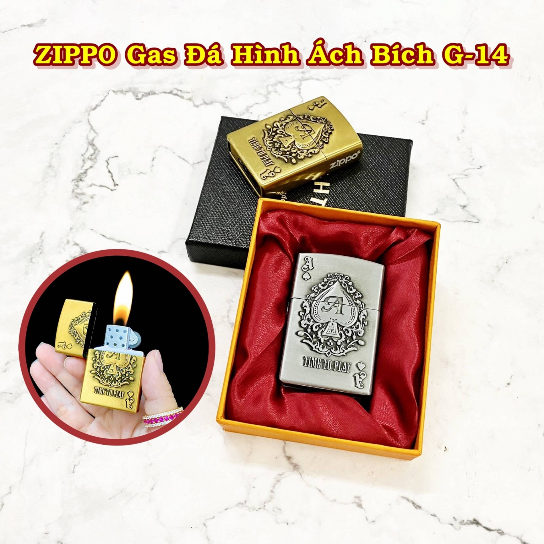 BẬT LỬA ZIPPO GAS ĐÁ HÌNH ÁCH BÍCH G-14 (CÓ HỘP) - (XÀI GAS)