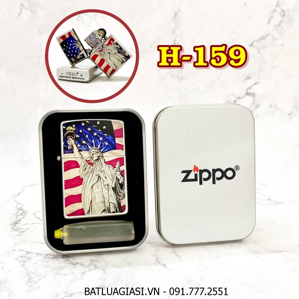 BẬT LỬA ZIPPO SƠN TĨNH ĐIỆN 2 MẶT HÌNH NỮ THẦN TỰ DO (CÓ MỘC ĐÁY) (HỘP THIẾC KÈM XĂNG) H-159